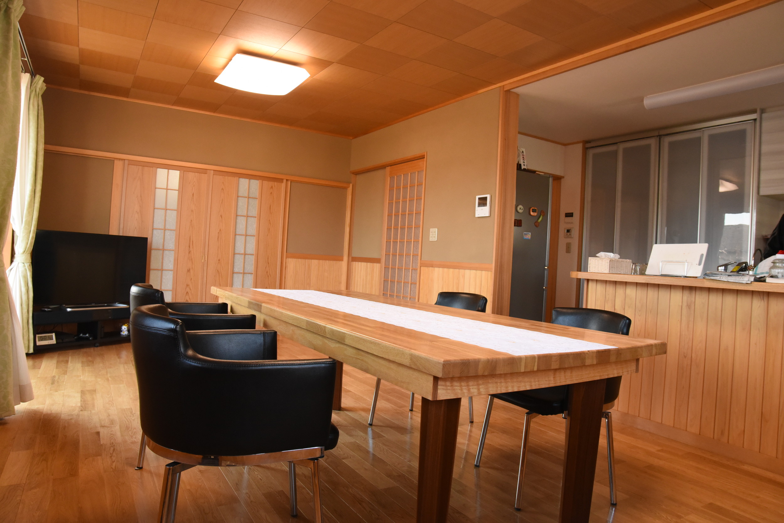 手作りのデザインテーブル、無垢の木材で設計されたリビングダイニングルーム